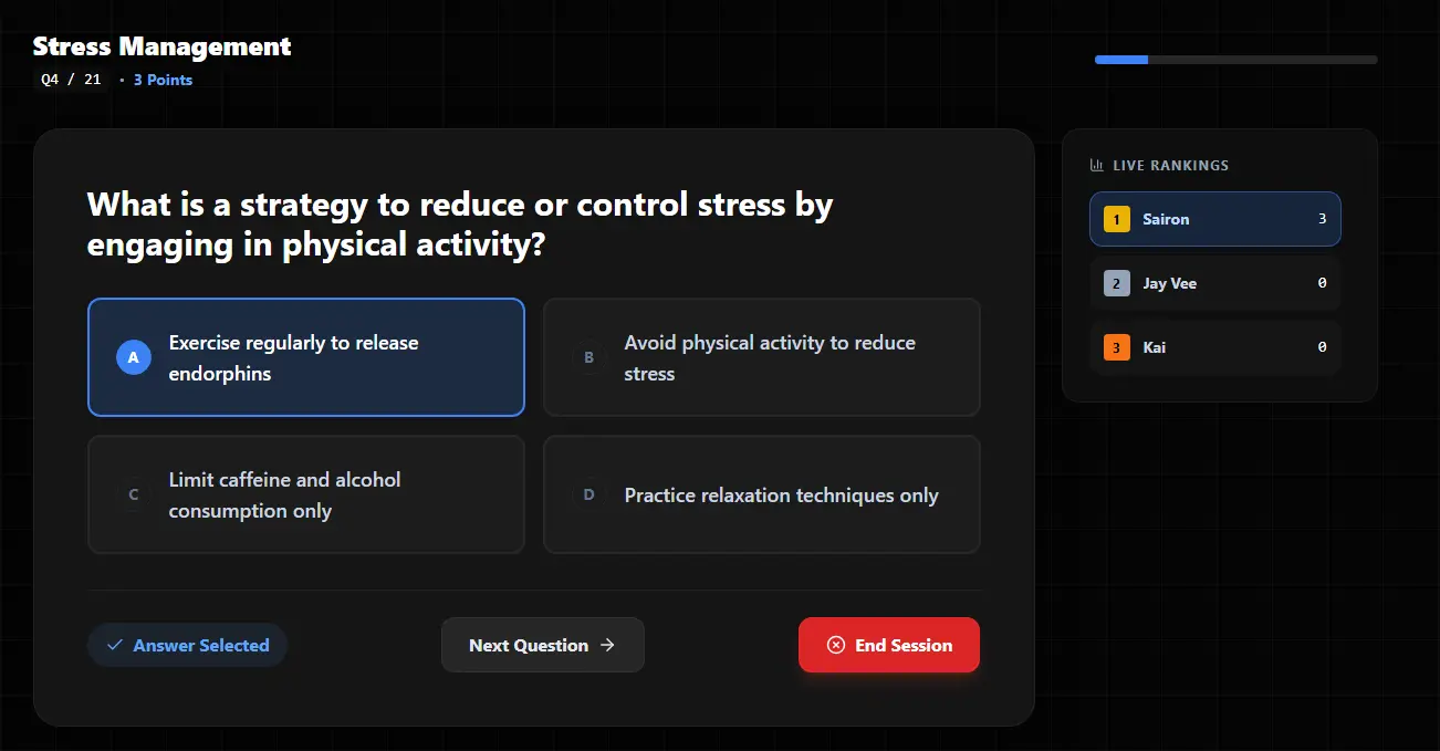 Challenge friends and classmates in real-time quiz competitions. Experience the thrill of live scoring, leaderboards, and competitive gameplay.